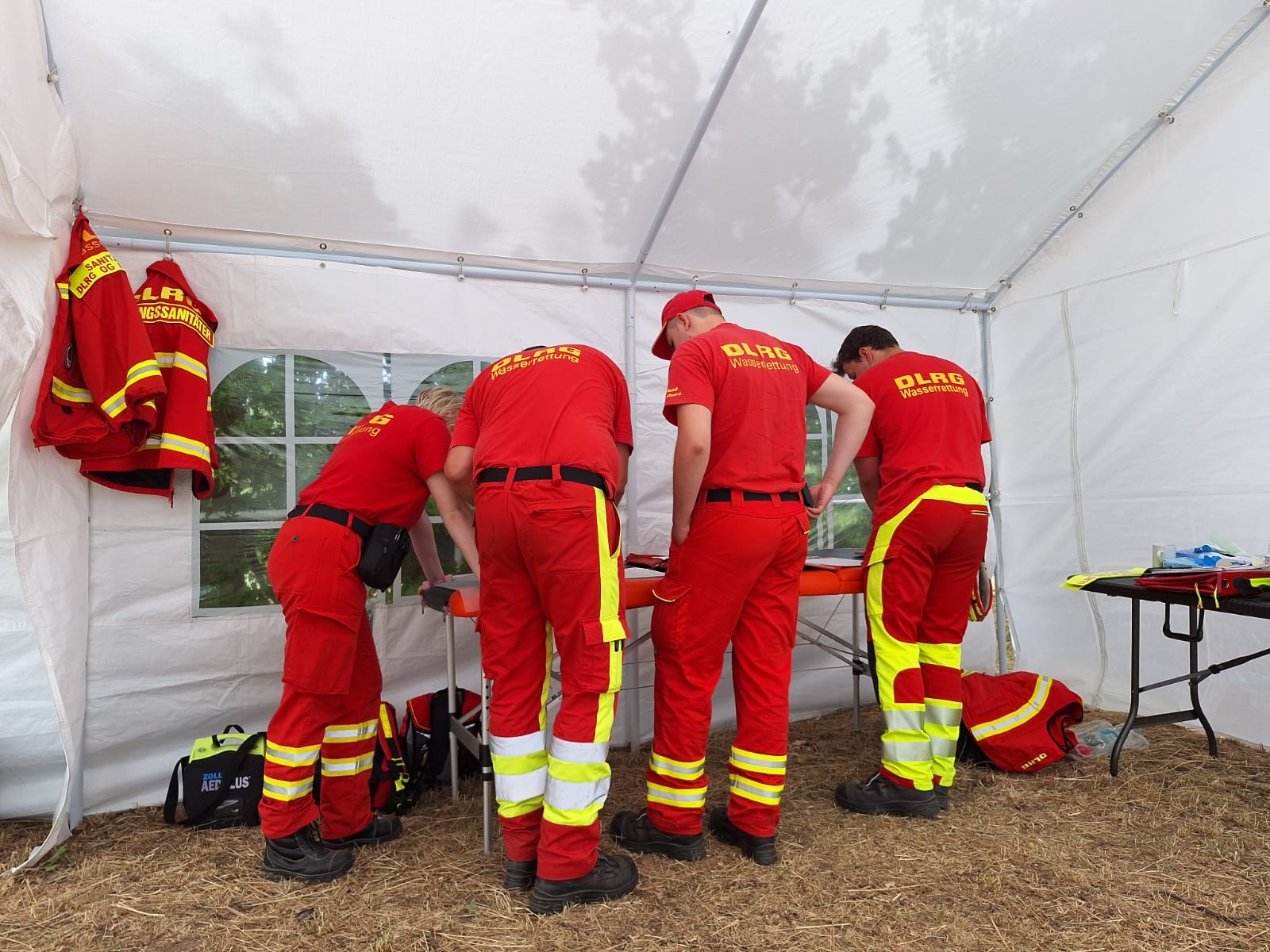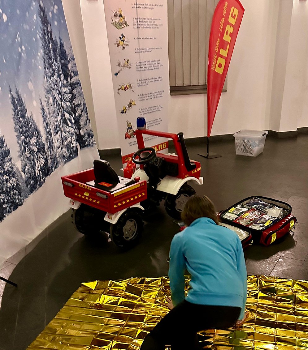 Besonderes Interesse weckte die Möglichkeit, an einer Übungspuppe selbst eine Reanimation durchzuführen und so hautnah zu erleben, wie Erste Hilfe funktioniert. Die kleinen Gäste konnten sich spielerisch ausprobieren, indem sie ihren Teddys Verbände anlegten oder beim „Knotenroulette“ gemeinsam mit den Eltern verschiedene Knoten übten. Für noch mehr Spaß sorgte eine Malstraße, eine Schaumkussschleuder mit Rettungsball, wo Gummibärchen das Fliegen lernten sowie der DLRG-Blaulicht-Parcours, bei dem die Kinder mit einem tollen roten DLRG-Tretauto mit Blaulicht – oder die ganz Kleinen mit einem DLRG-Rutscheauto – durchstarten konnten.