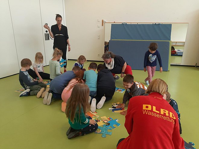 unbekannte Wasser gefährlich sein kann. Durch Spiele, Lieder und kleine
