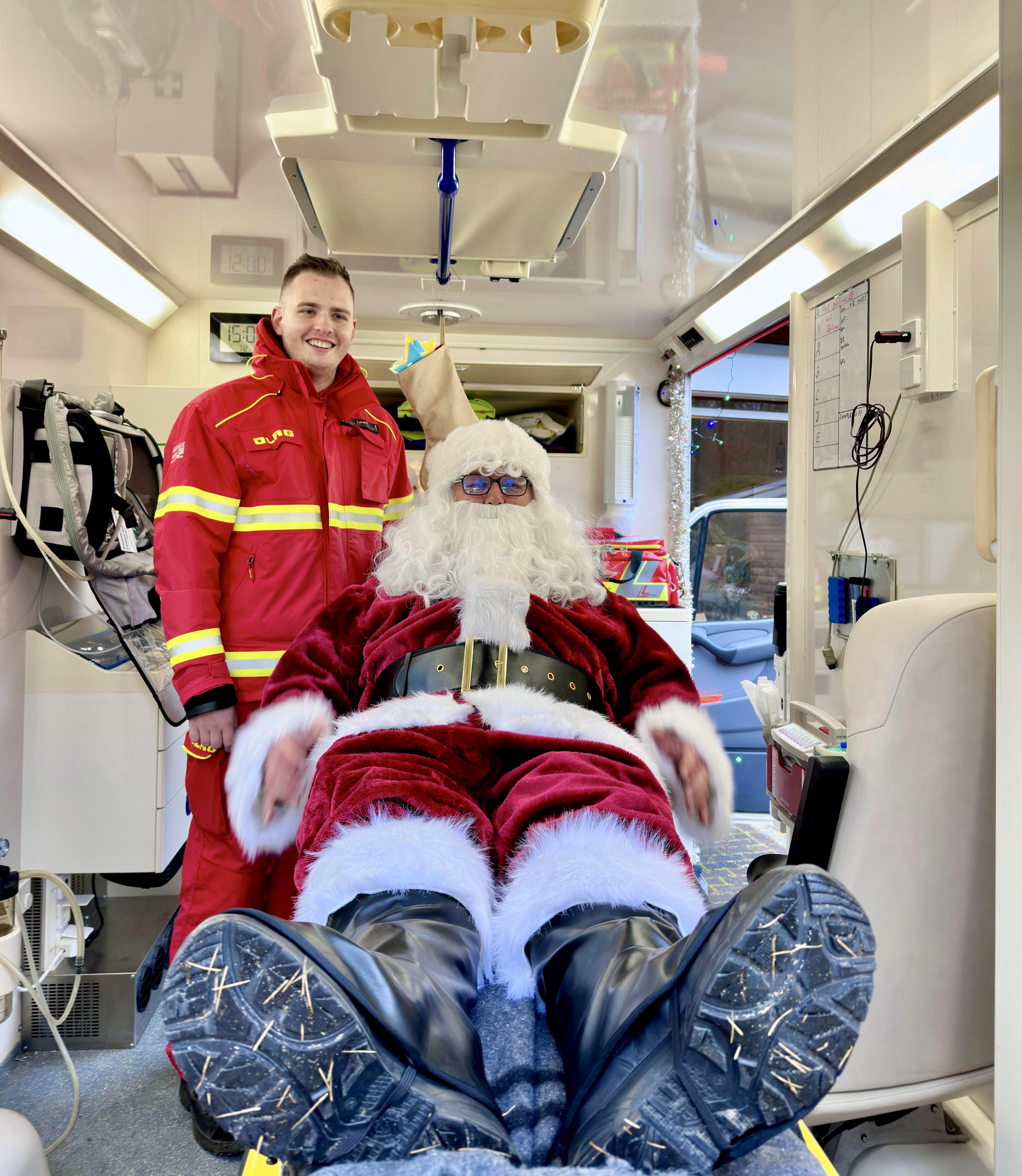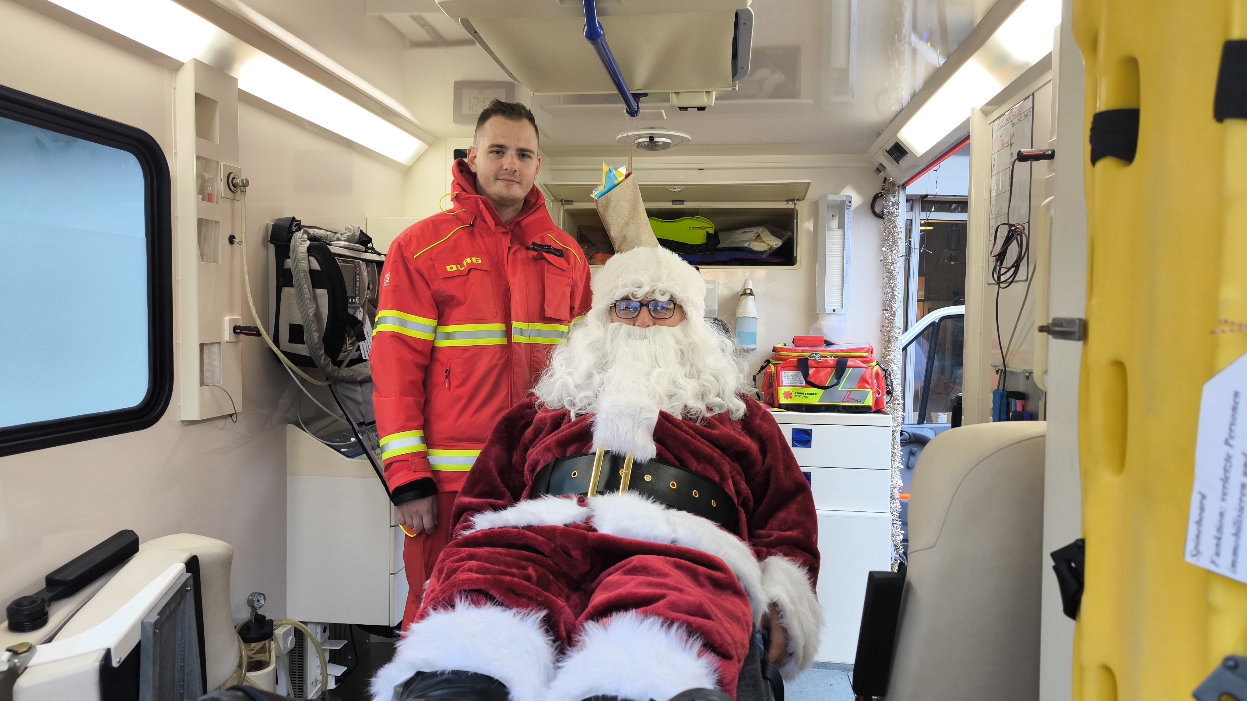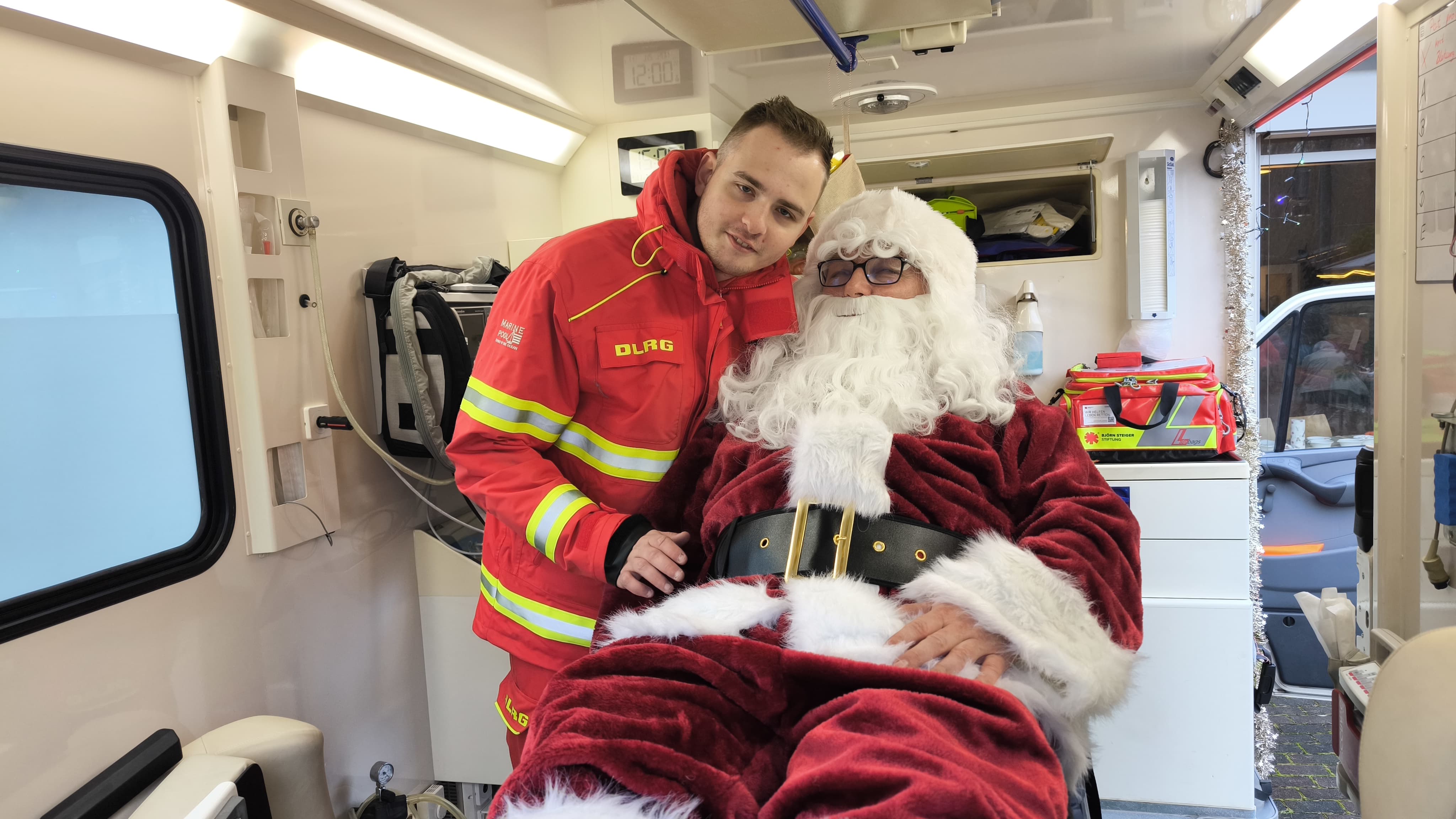 Am Sonntag hatten die Besucher zudem die Gelegenheit, unseren Krankentransportwagen (KTW) aus nächster Nähe zu besichtigen und sich über dessen Ausstattung zu informieren. Große Freude bereitete auch der Besuch unseres Maskottchens Nobbi, des Nikolaus und des Weihnachtsmannes, die mit kleinen Geschenken für strahlende Kinderaugen sorgten. Der Weihnachtsmann ließ sich die Gelegenheit für einen kurzen Check im KTW natürlich auch nicht entgehen.