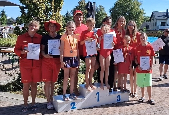 Die Kameradinnen und Kameraden der DLRG Parthenaue e.V. führten am 30. August 2025 im Waldbad Naunhof ein Spendenschwimmen durch, um Mittel für die Sanierung und damit den Erhalt des Waldbades einzuwerben.