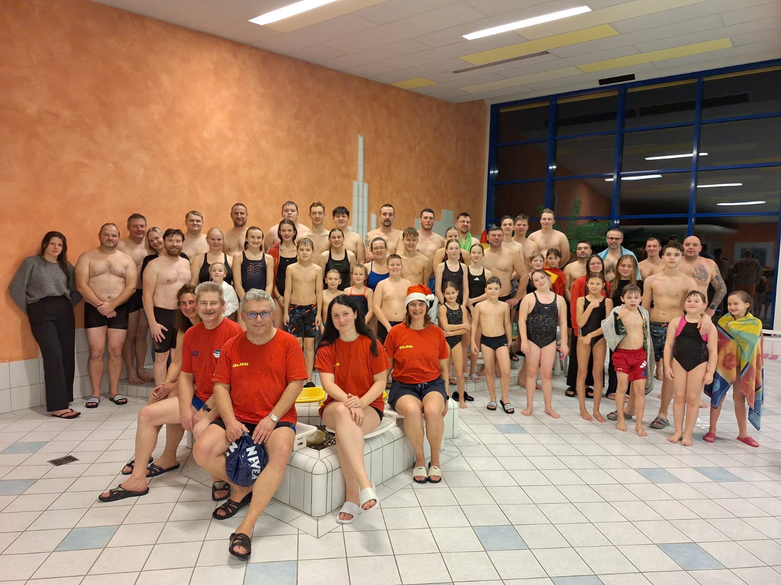 Unter den anfeuernden Rufen der Sportler gab es spannende Schwimmstaffeln mit Weihnachtsmützen, Poolnudeln, Luftmatratzen oder großen goldenen Bällen. Den Schluss bildete ein stimmungsvolles Kerzenschwimmen und am Ende gab es für alle Sportler und Trainer ein kleines Geschenk.